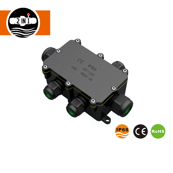 มีกล่องรวมสัญญาณกันน้ำทั้งชุด ได้แก่ 2 ทาง 3 ทาง 4 ทาง 5 ทางและ 6 ทาง กล่องรวมสัญญาณไฟฟ้าแบบกันน้ำแบบ 5 ทางมีหลายส่วนเพื่อให้มั่นใจในระดับการกันน้ำ รวมถึงโอริง ยาแนวกันน้ำ และซีลปลายสายแบบยืดหยุ่นที่ออกแบบมาเพื่อให้แน่นและปิดผนึกสายเคเบิลหลังจากบัดกรีด้วยหน้าสัมผัสด้วยสายเคเบิล